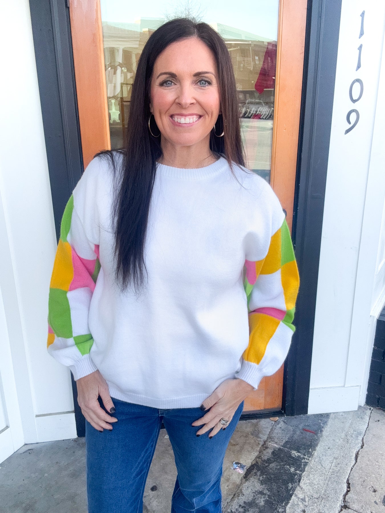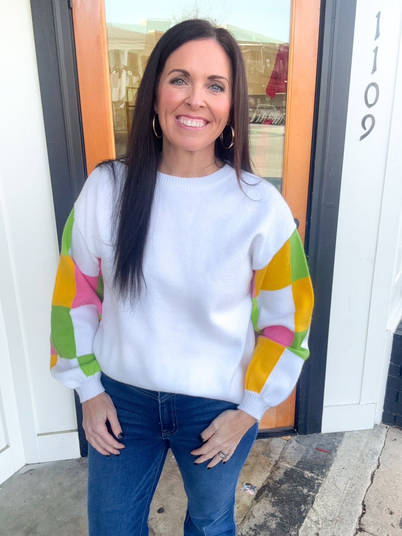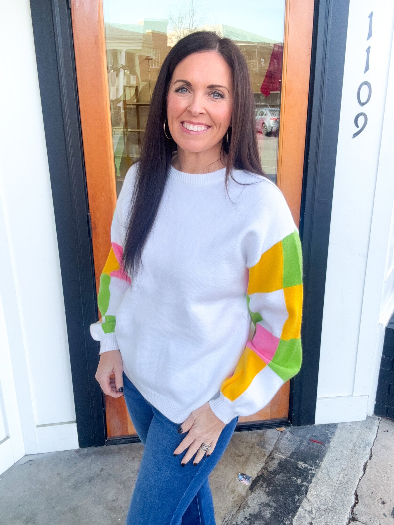 Our These Dreams Colorblock Sweater is what spring dreams are made of--pops of color!