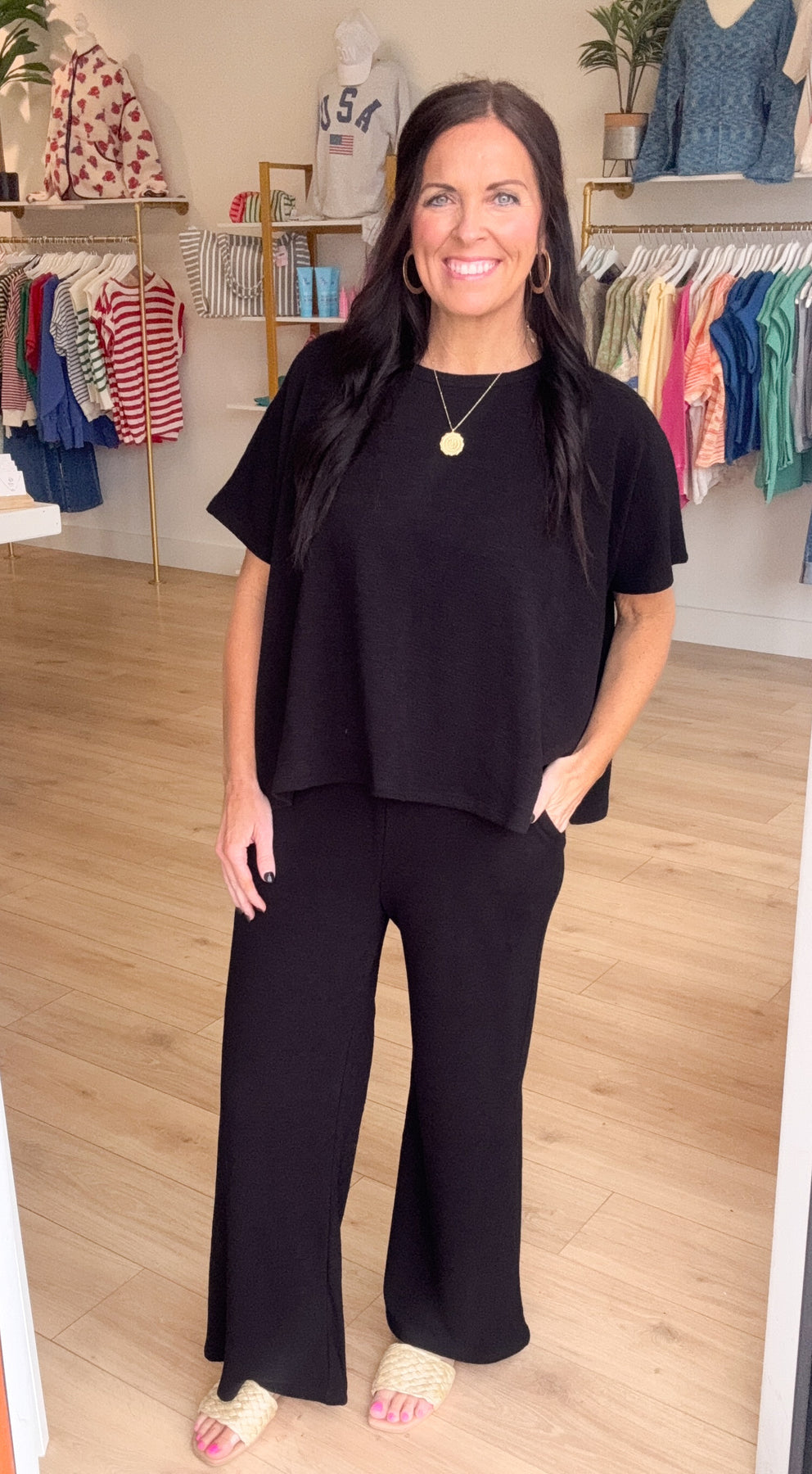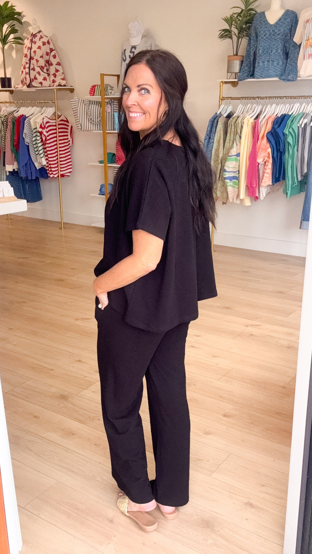 Our Dancing on the Ceiling Slub Knit Pants make an amazing set with our Dancing on the Ceiling Slub Knit Top or can be mixed and matched with your favorite basic tee or bodysuit!