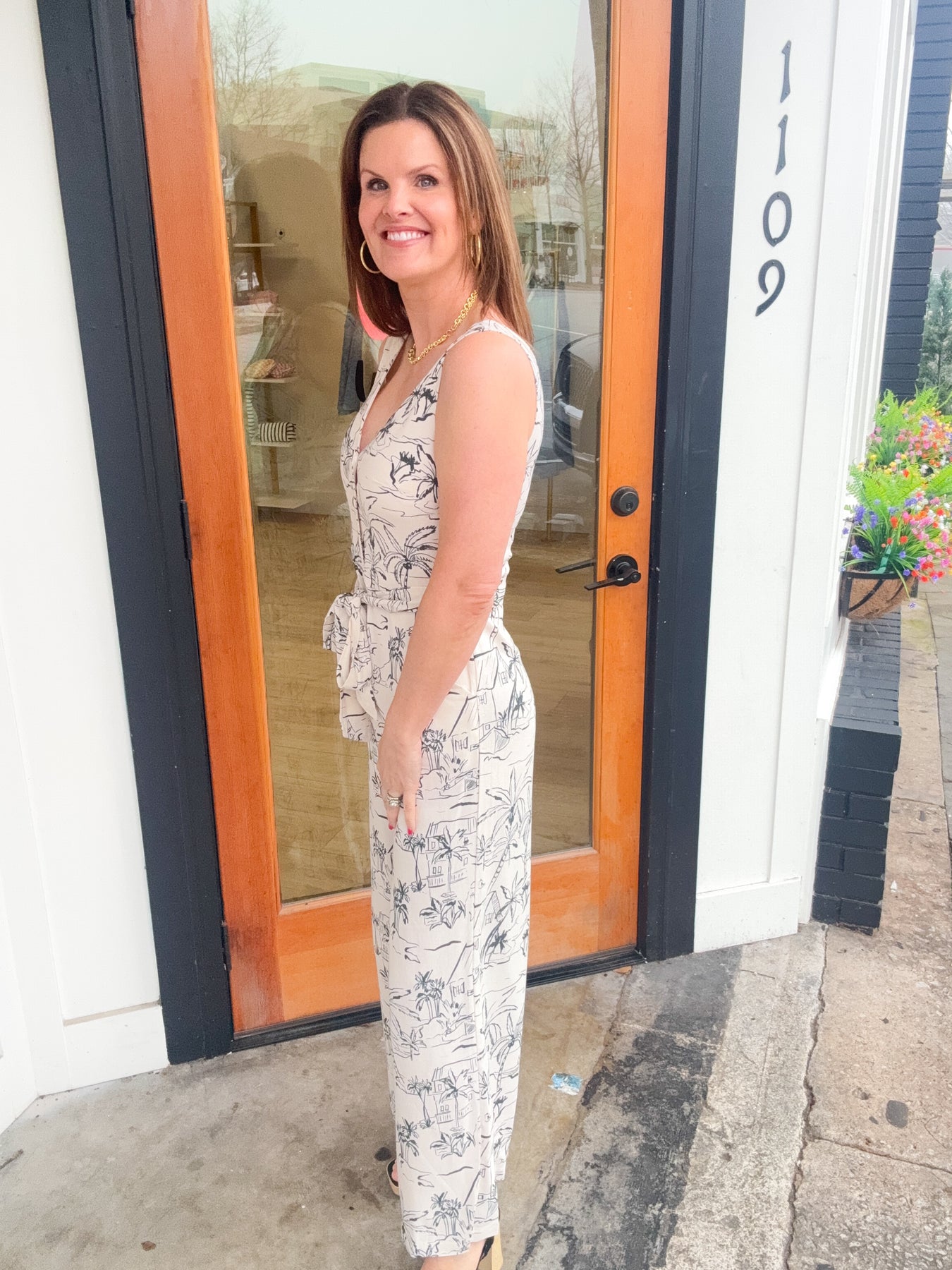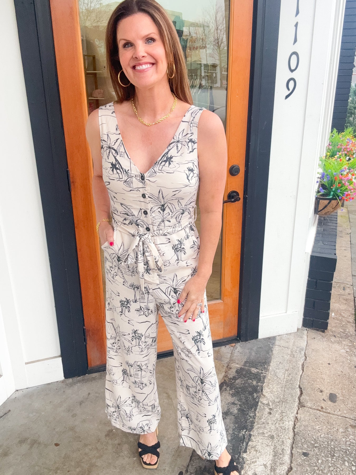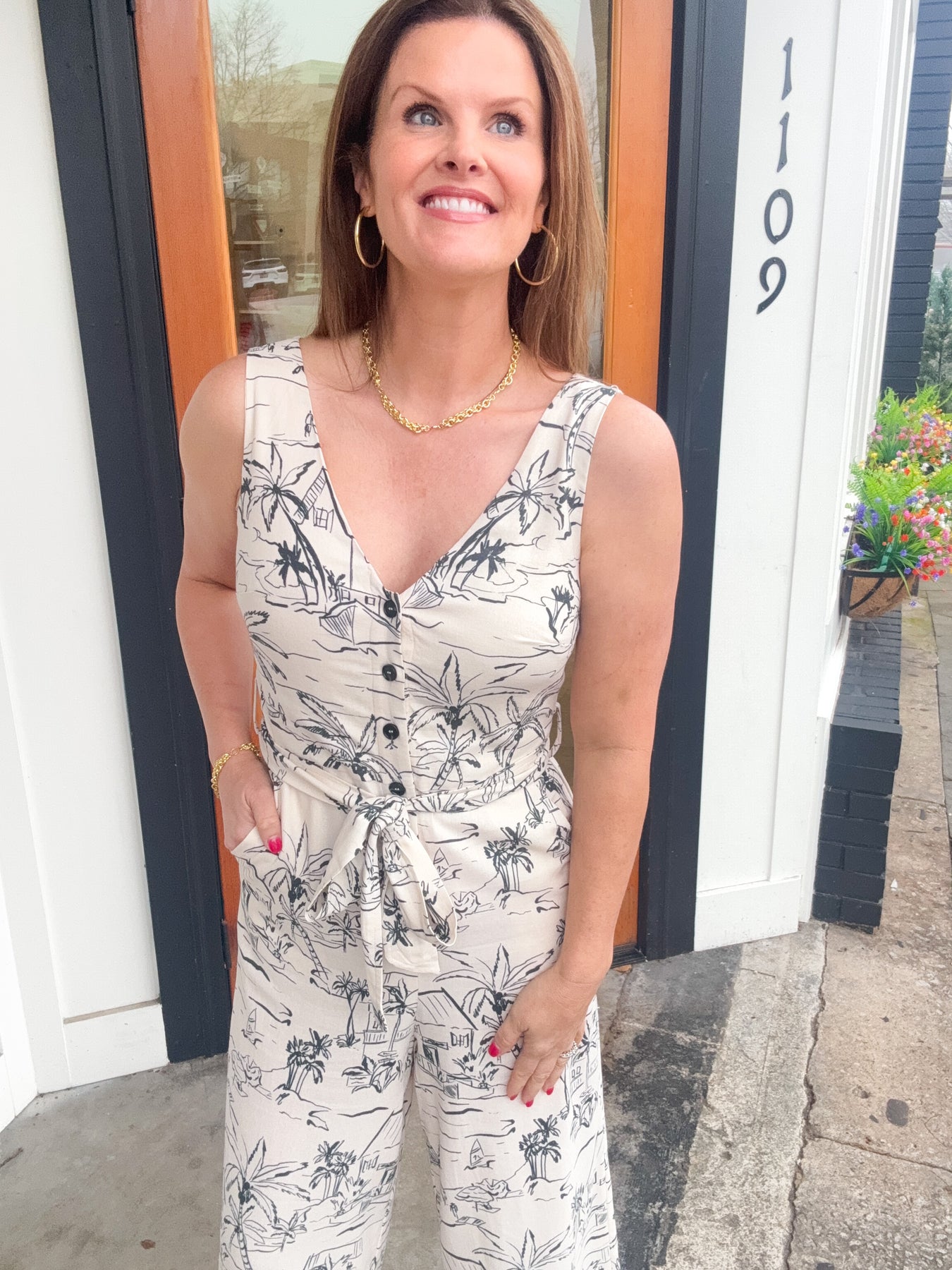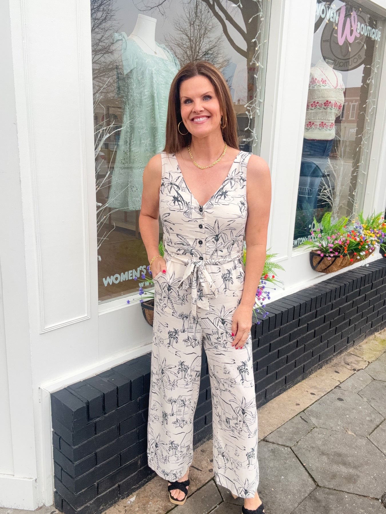 Our Sail Away With Me Button Front Jumpsuit will have you ready to sail away to warmer weather and an ocean view!